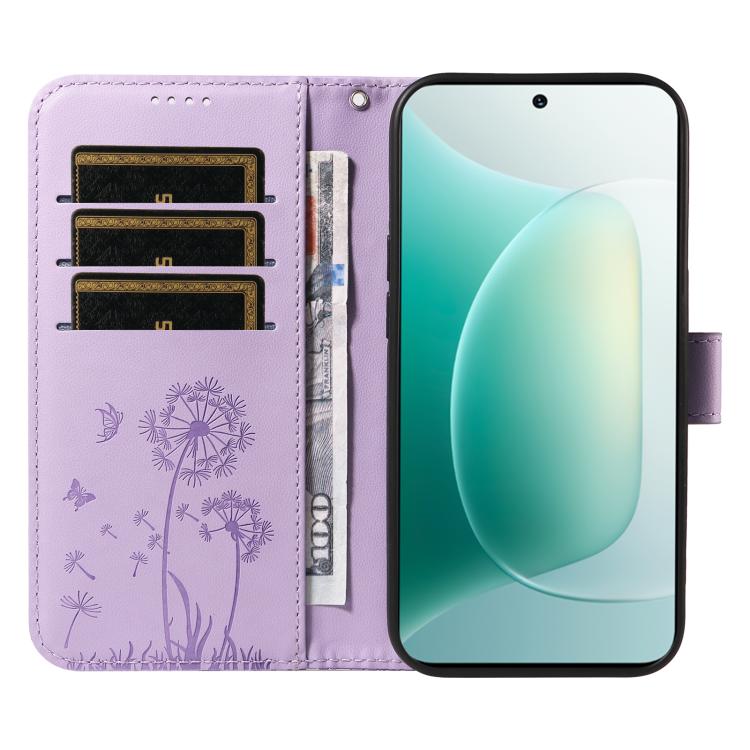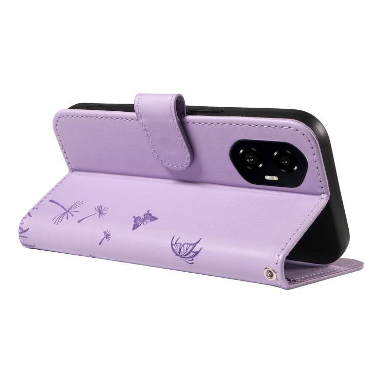 Funda de Cuero con Tapa para Honor 300 Diseño Diente de León en Relieve (Morado)