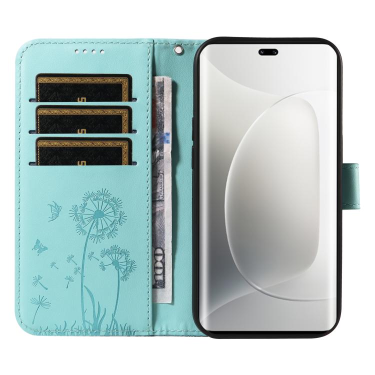 Funda de Cuero con Tapa para Honor 300 Pro/300 Ultra Diseño Diente de León (Verde)