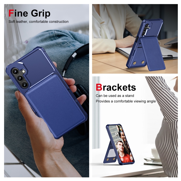 Funda Cuero con Tapa Vertical para Samsung Galaxy A25 5G con Tarjetero y Soporte (Azul Oscuro)
