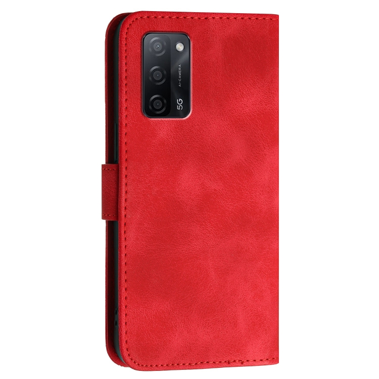 Funda de Cuero con Tapa y Cordón para Oppo A55 5G/A53S 5G Yx0080 con Diseño En Relieve de Mariposa y Cuadrícula (Rojo)