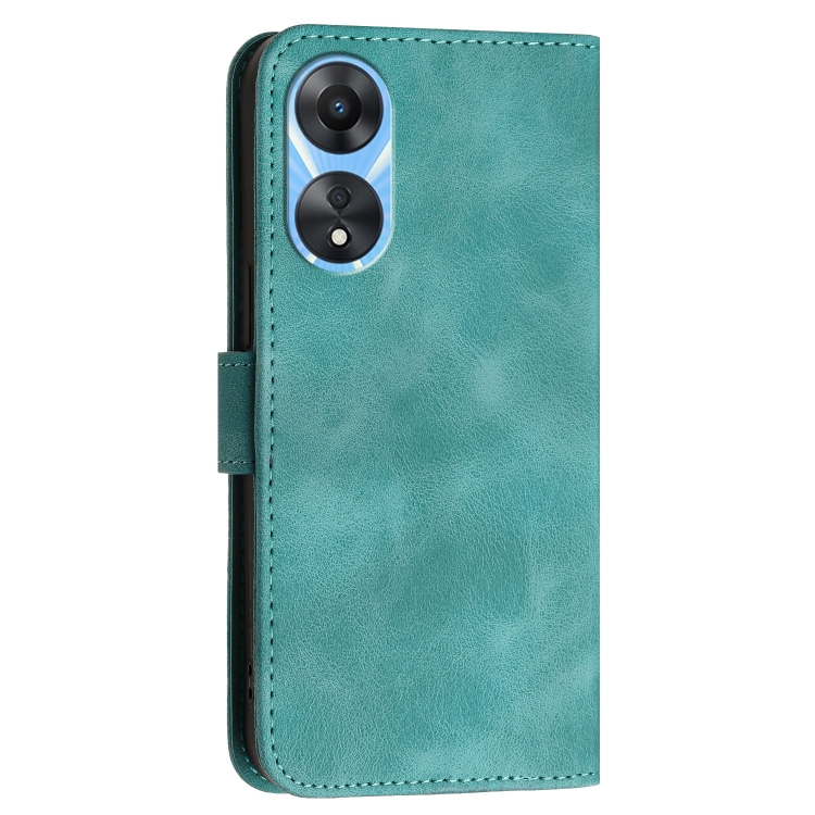 Funda de Cuero con Tapa y Cordón para Oppo A78 4G Yx0080 con Diseño En Relieve de Mariposa y Cuadrícula (Azul Claro)