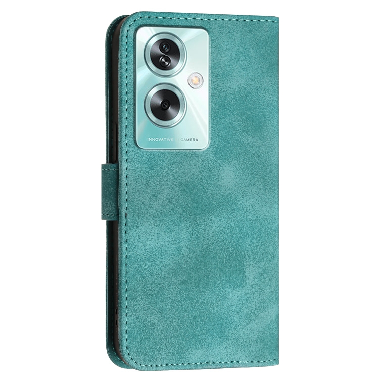 Funda de Cuero con Tapa y Cordón para Oppo A79 5G Global Yx0080 con Diseño En Relieve de Mariposa y Cuadrícula (Azul Claro)