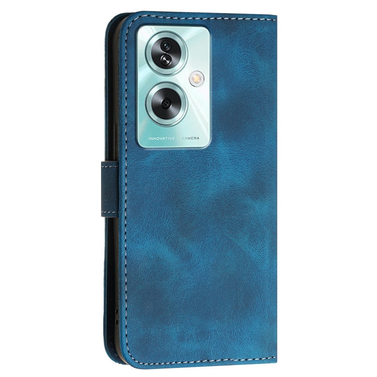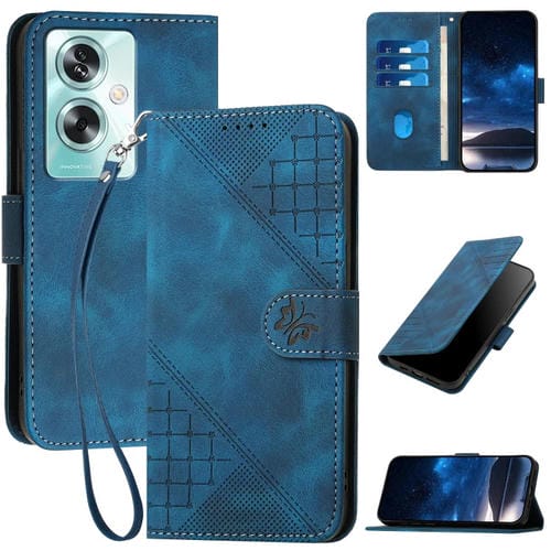 Funda de Cuero con Tapa y Cordón para Oppo A79 5G Global Yx0080 con Diseño En Relieve de Mariposa y Cuadrícula (Azul Oscuro)