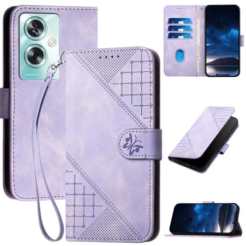 Funda de Cuero con Tapa y Cordón para Oppo A79 5G Global Yx0080 con Diseño En Relieve de Mariposa y Cuadrícula (Morado Claro)