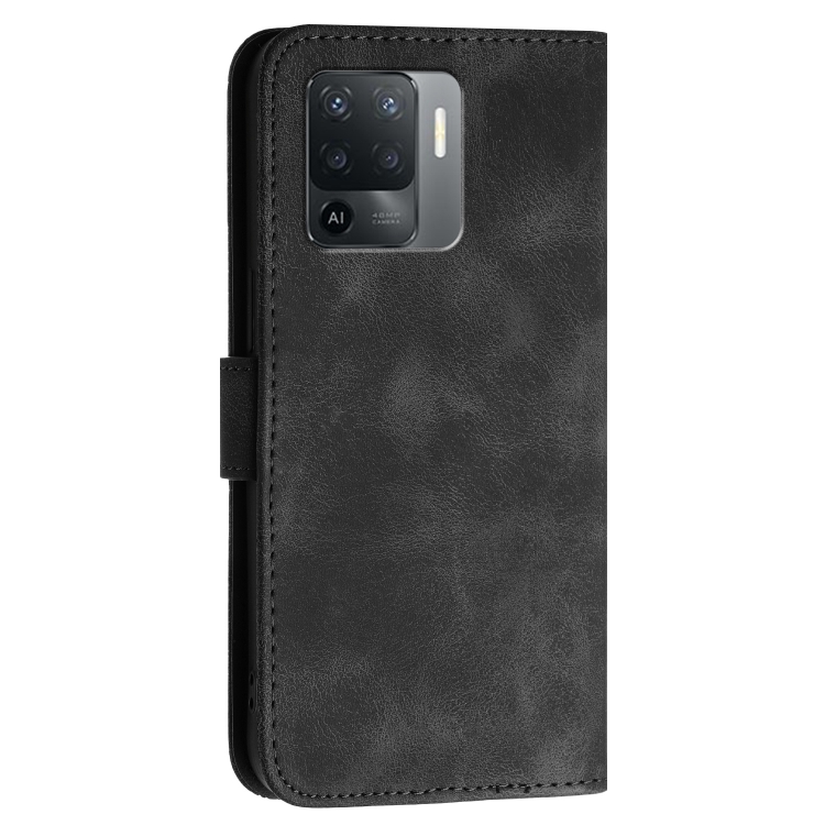 Funda de Cuero con Tapa y Cordón para Oppo A94 4G / F19 Pro 4G Yx0080 con Diseño En Relieve de Mariposa y Cuadrícula (Negro)