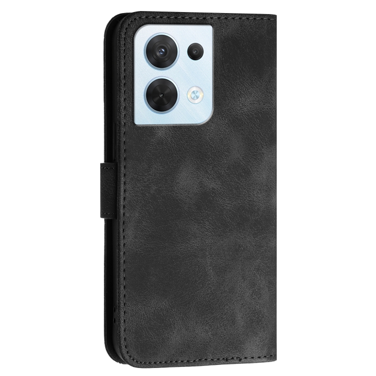 Funda de Cuero con Tapa y Cordón para Oppo Reno8 5G Global Yx0080 con Diseño En Relieve de Mariposa y Cuadrícula (Negro)