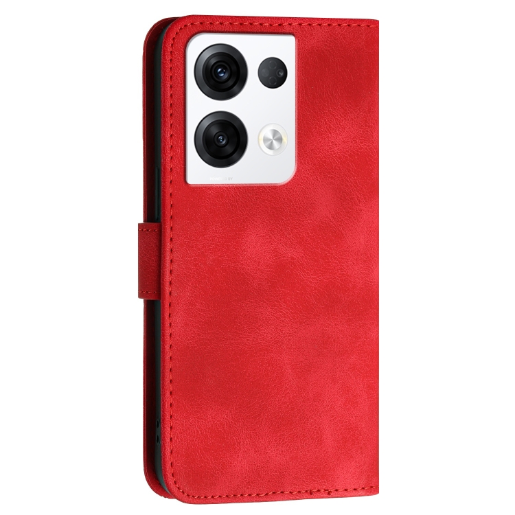 Funda de Cuero con Tapa y Cordón para Oppo Reno8 Pro 5G Global Yx0080 con Diseño En Relieve de Mariposa y Cuadrícula (Rojo)