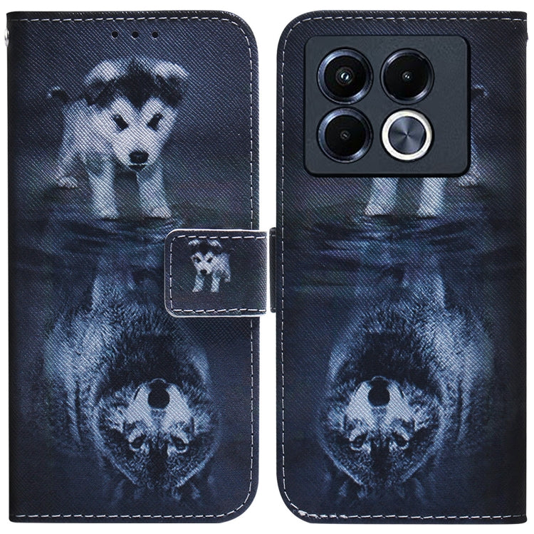 Funda de Cuero con Tapa y Dibujo a Color para Infinix Note 40 5G (Lobo y Perro)