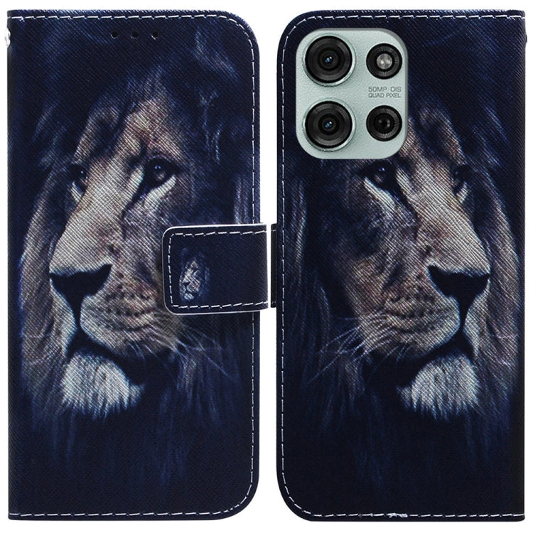 Funda de Cuero con Tapa y Dibujo a Color para Motorola Moto G75 5G (León)