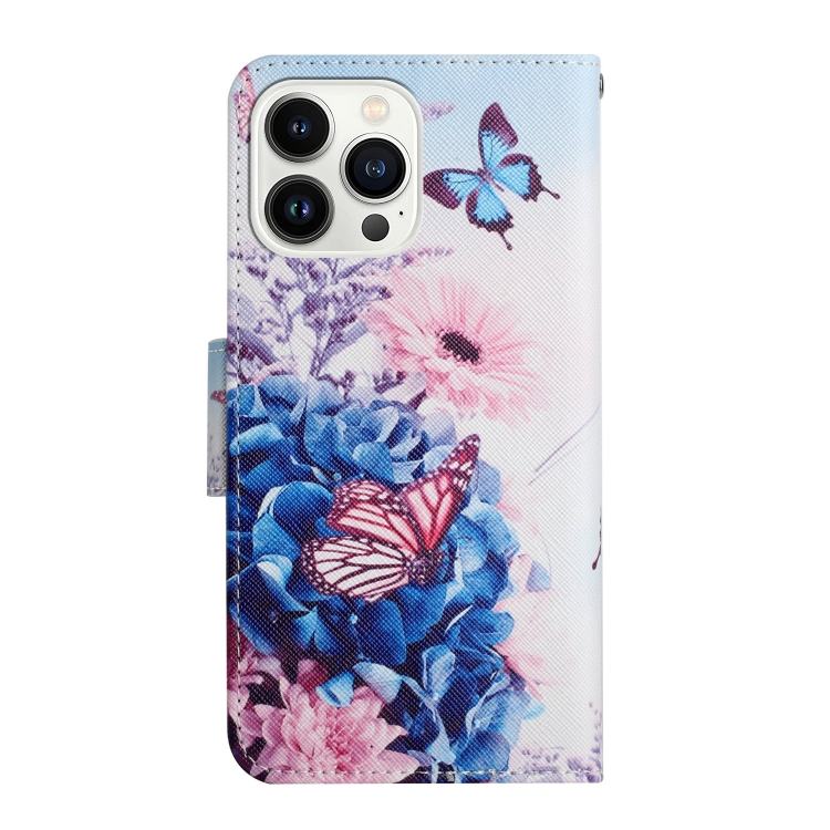 Funda de Cuero con Tapa para iPhone 16 Pro Dibujo Color 3D (Mariposa Morada)