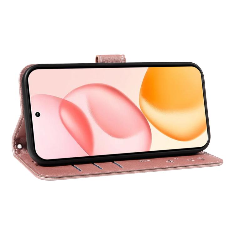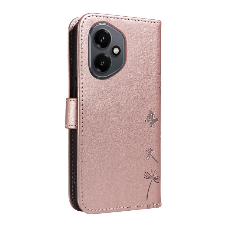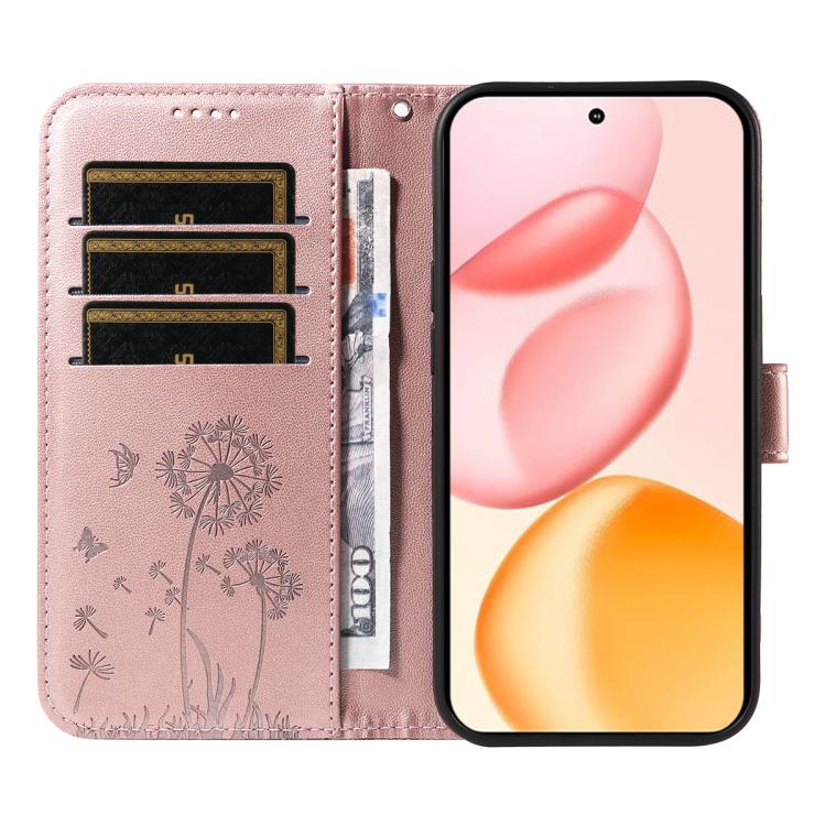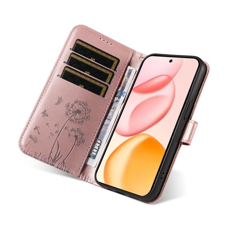 Funda de cuero con tapa y diseño de diente de león en relieve para Honor 400 Global (156,5 mm) (oro rosa)