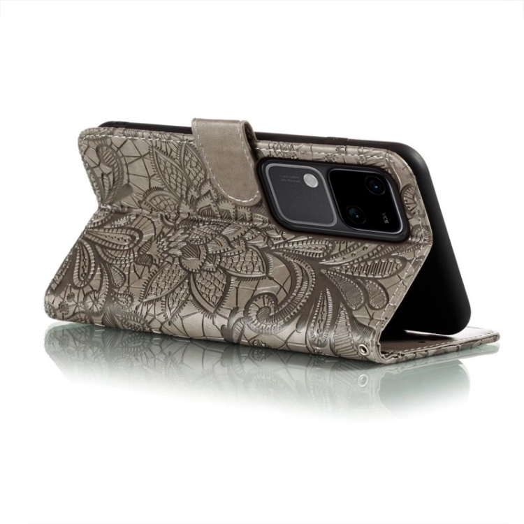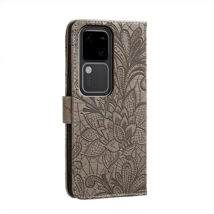 Funda de Cuero con Tapa y Diseño de Flores En Relieve para Vivo S18 (Gris)