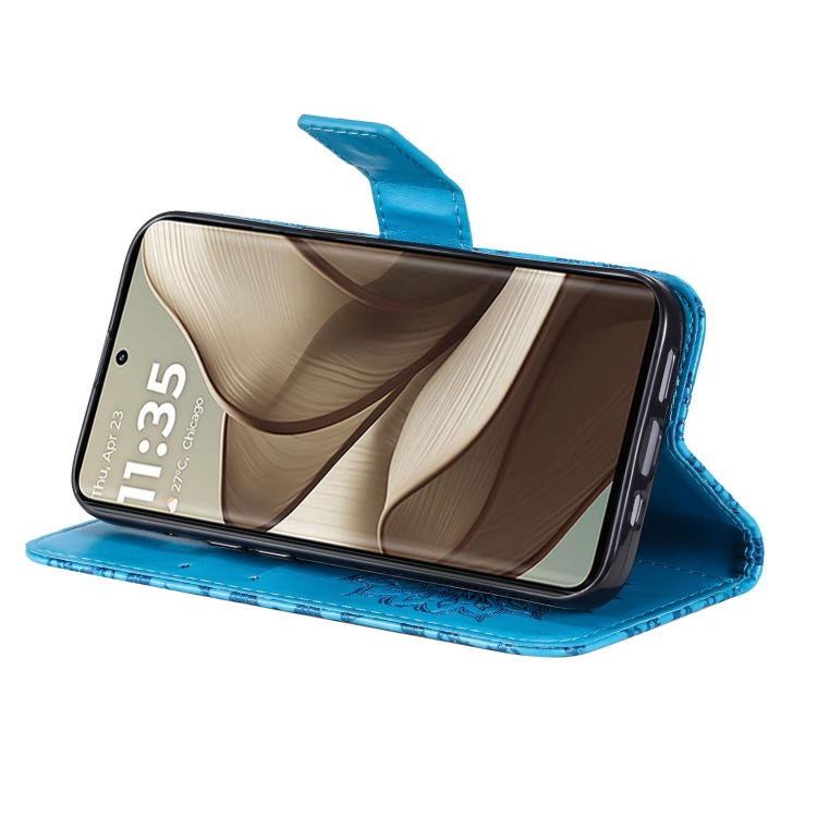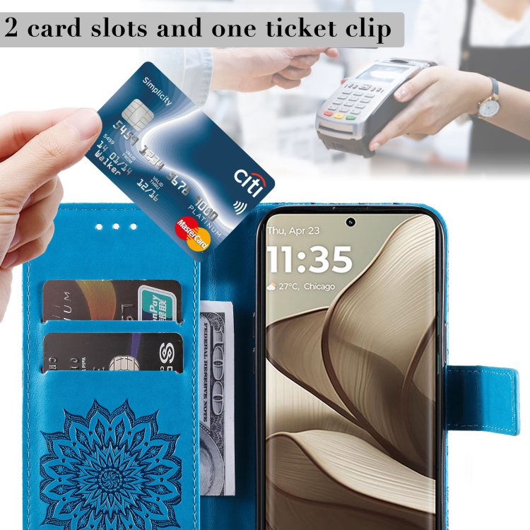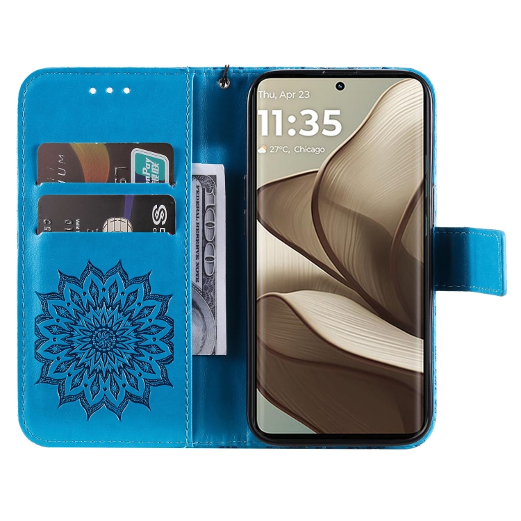 Funda de Cuero con Tapa y Diseño de Girasol en Relieve para Motorola Edge 50 5G (Azul)