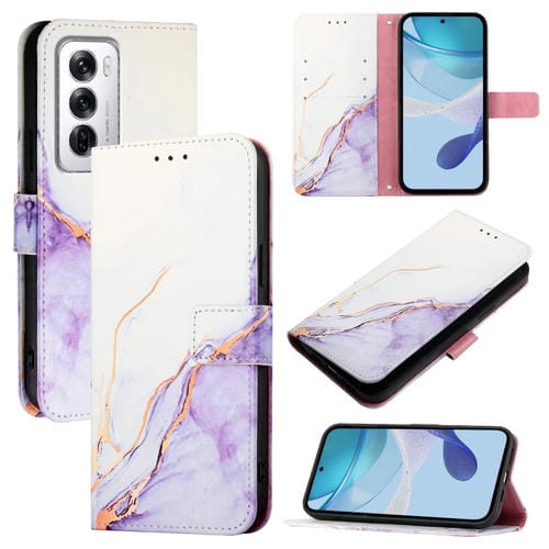 Funda de Cuero con Tapa y Diseño de Mármol para Oppo Reno12 Global Pt003 (Blanco y Morado)