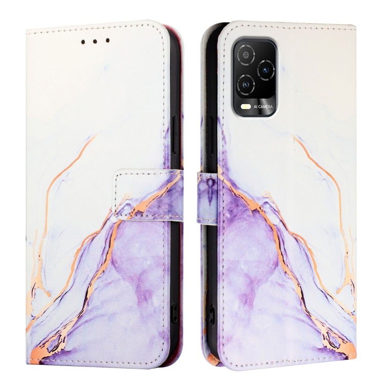 Funda de Cuero con Tapa para BLU View 5 Pro Pt003 Diseño Mármol (Blanco y Morado)