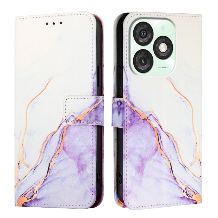 Funda de Cuero con Tapa y Diseño de Mármol para Teléfono Itel A50 Pt003 (Blanco y Morado)