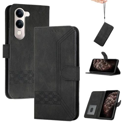 Funda de Cuero con Tapa y Diseño de Piel Cúbica Global para Vivo Y29S 5G / Y04 4G (Negra)