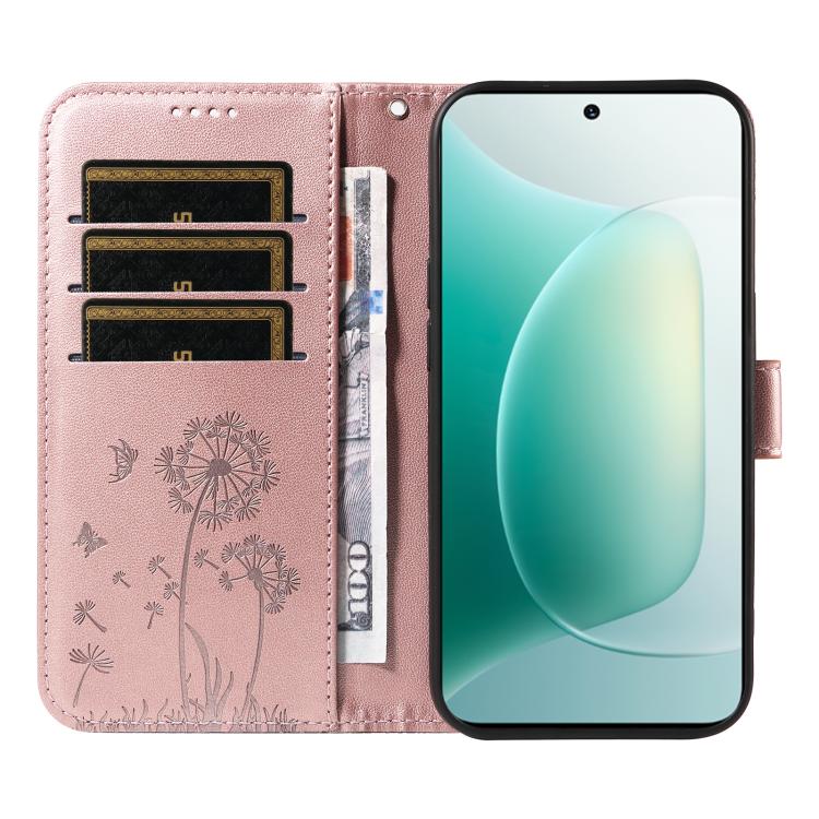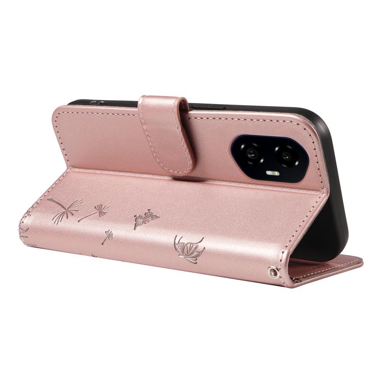 Funda de Cuero con Tapa para Honor 300 Diseño En Relieve Diente de León (Oro Rosa)