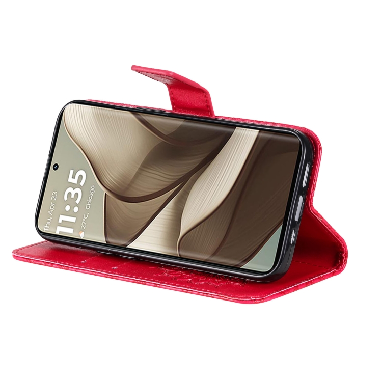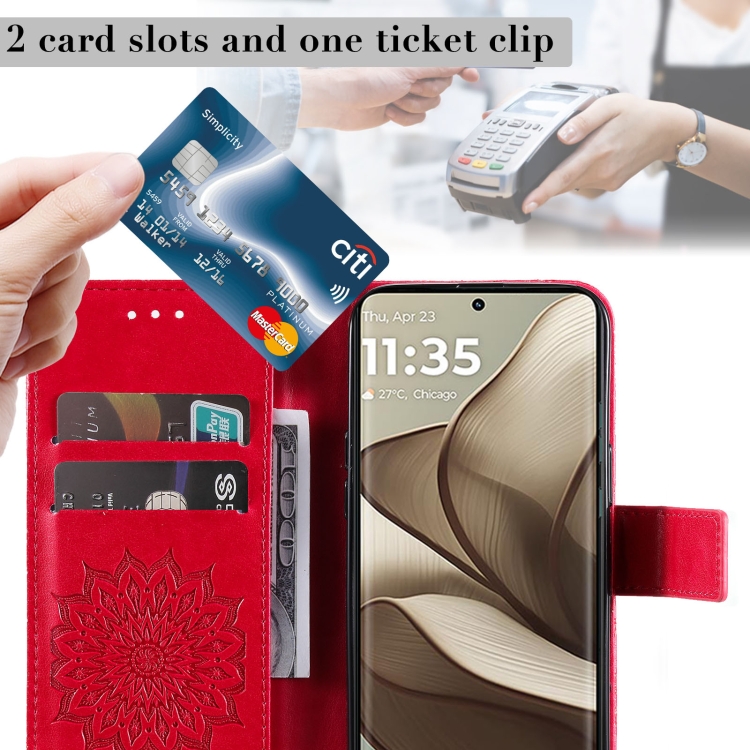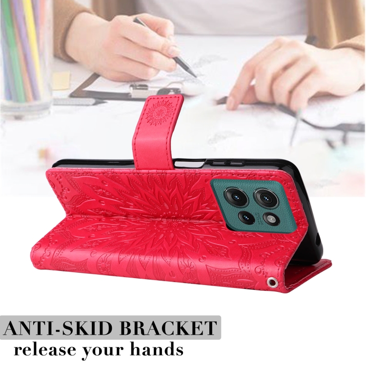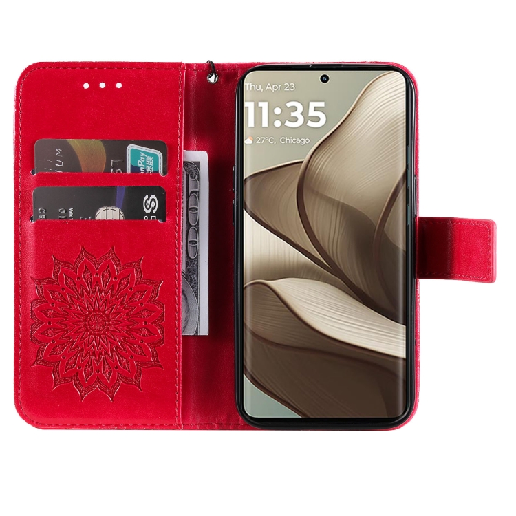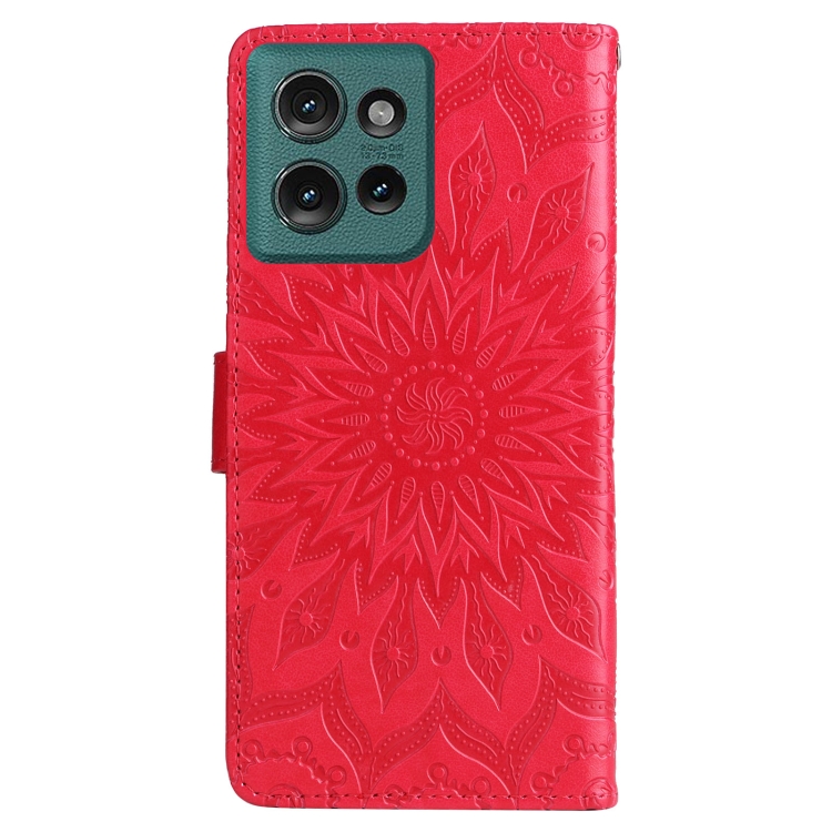 Funda de Cuero con Tapa y Estampado de Girasol en Relieve para Motorola Edge 50 5G (Rojo)