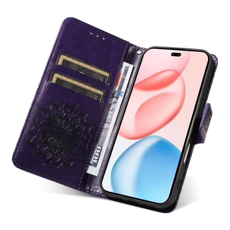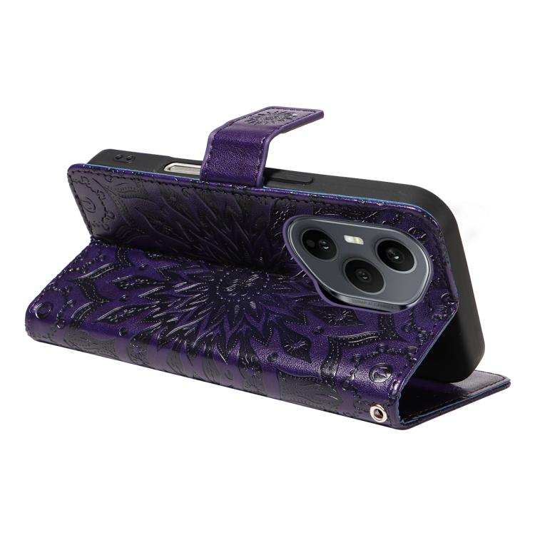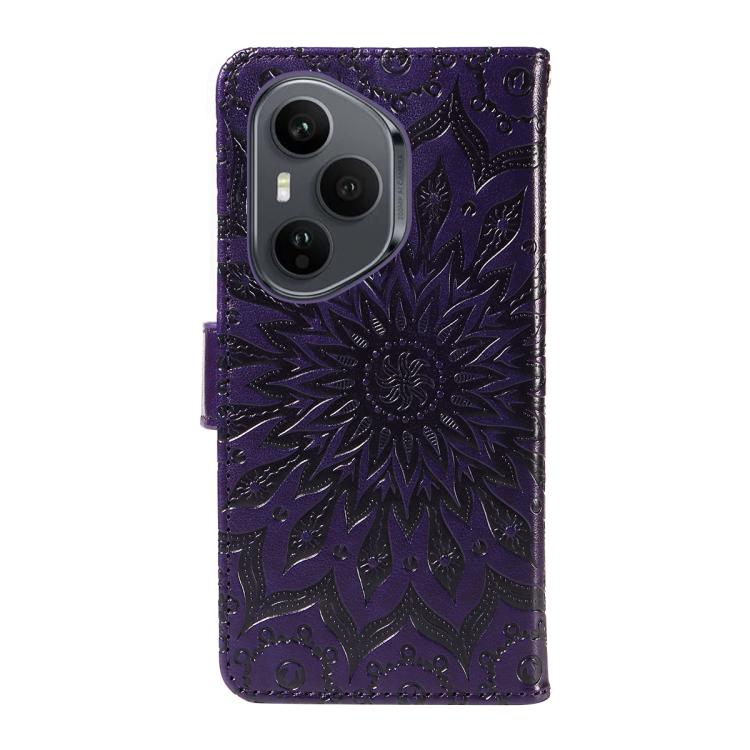 Funda de cuero con tapa y estampado de girasoles en relieve para Honor 400 Pro Global (160,8 mm) (morado)