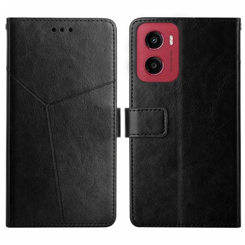 Funda de Cuero con Tapa y Patrón en Y para Motorola Moto G05 Ht01 (Negro)