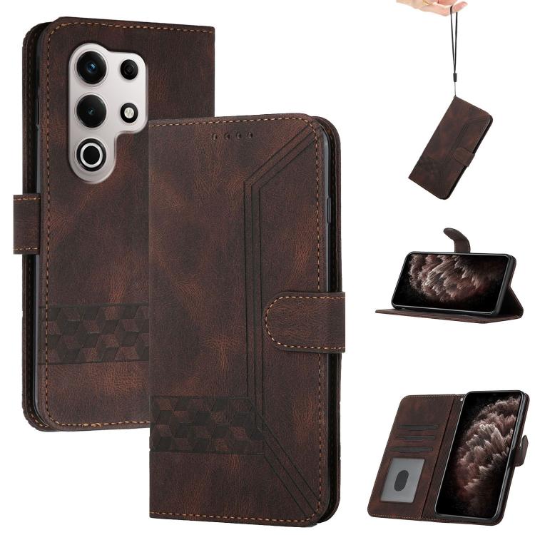 Funda de Cuero con Tapa y Tacto de Piel Cúbica para Itel S25 Ultra (Marrón)