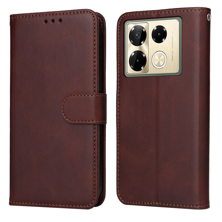 Funda de Cuero con Tapa y Textura Clásica Becerro para Infinix Note 40 Pro 4G/5G y Note 40 Pro+ (Marrón)