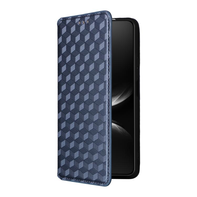 Funda de cuero con tapa y textura de cuadrícula cúbica para Huawei Nova 14 Ultra 5G (azul)