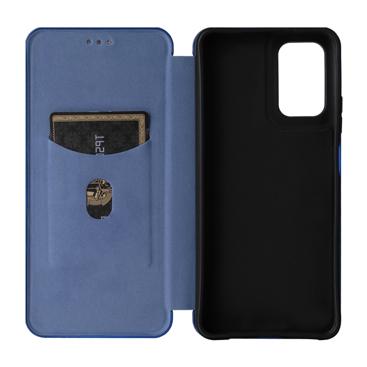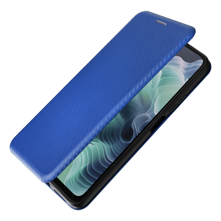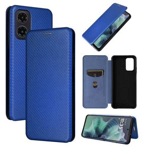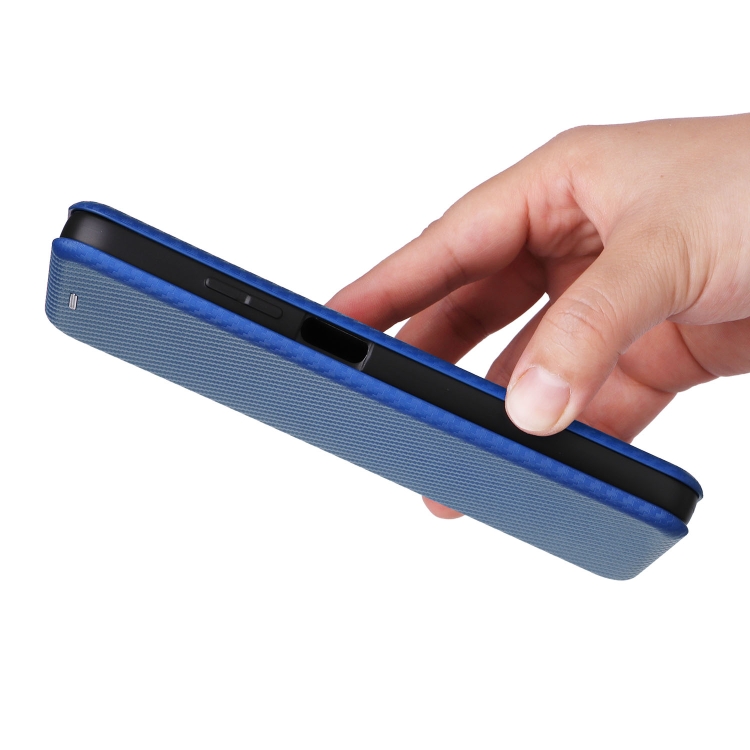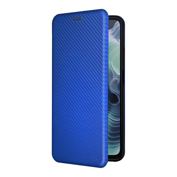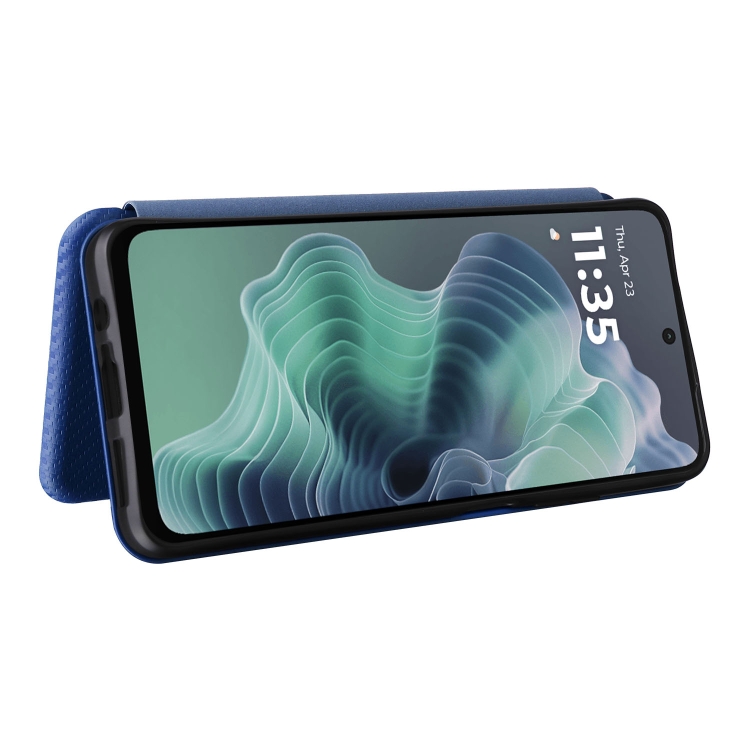 Funda de Cuero con Tapa y Textura de Fibra de Carbono para Motorola Moto G35 (Azul)