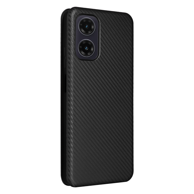 Funda de Cuero con Tapa y Fibra de Carbono para Motorola Moto G35 (Negro)