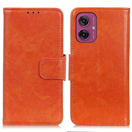Funda de Cuero con Tapa y Textura Nappa para Motorola Moto G55 5G (Naranja)