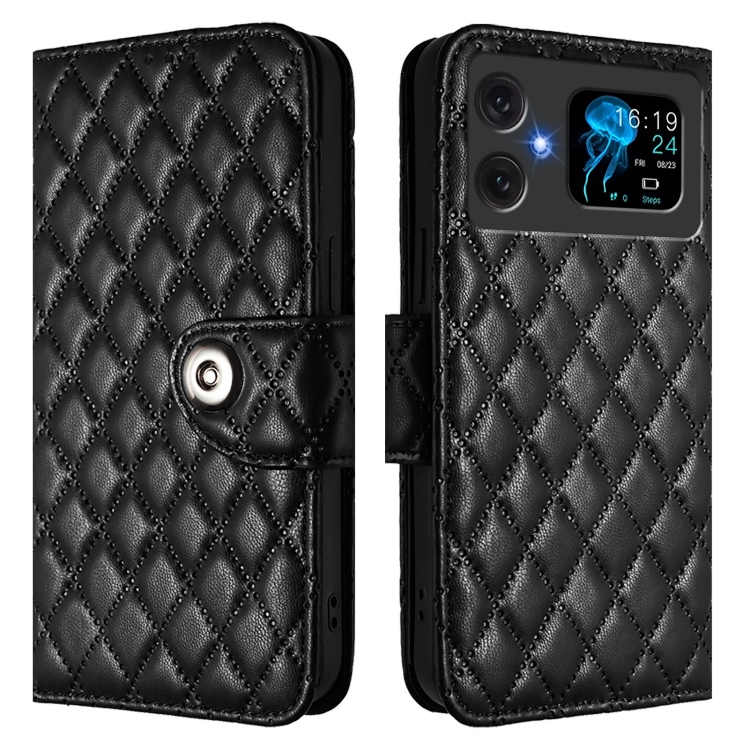 Funda de Cuero con Tapa para Cubot A20 con Textura Rombal y Cordón (Negro)