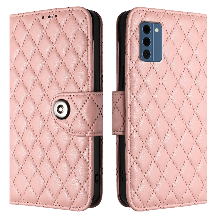Funda de Cuero con Tapa y Textura Rombal para Nokia C300 con Cordón (Rosa Coral)