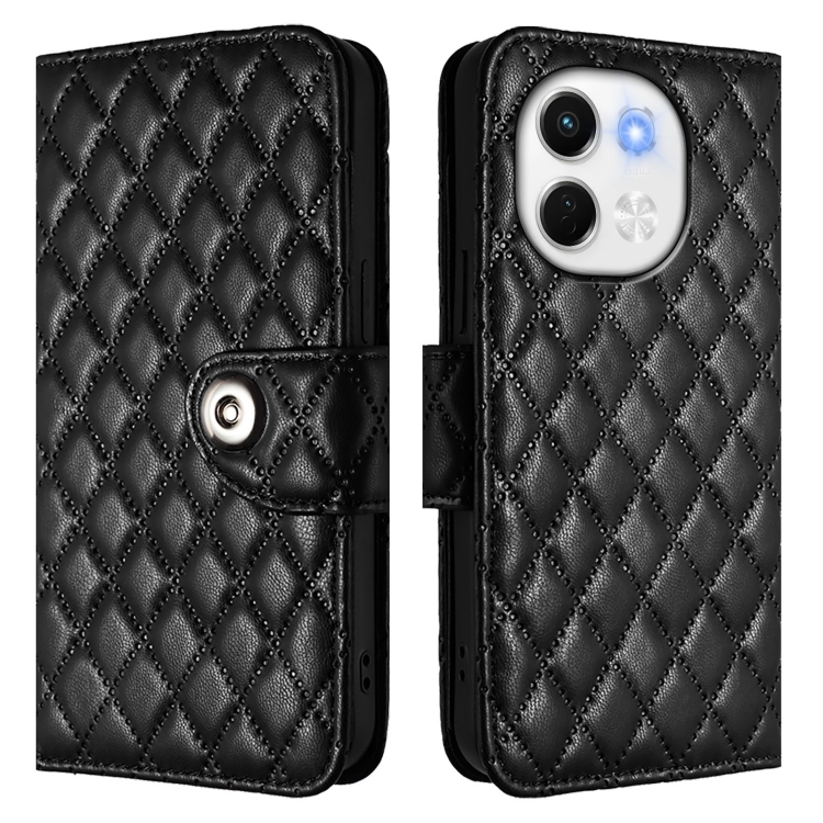 Funda de Cuero con Textura Rómbica y Cordón para Tecno Spark 30 5G (Negra)