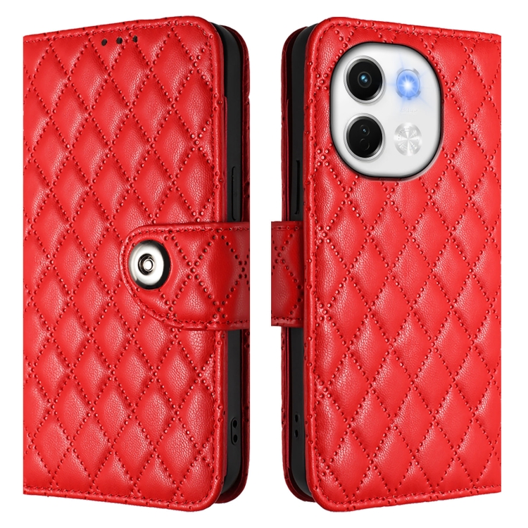 Funda de Cuero para Tecno Spark 30 5G con Textura Rómbica y Cordón (Roja)