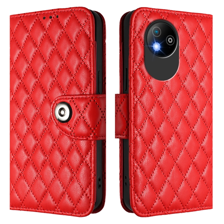 Funda de Cuero con Tapa y Textura Rombal para ZTE Blade A35 Lite con Cordón (Rojo)