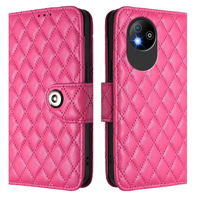 Funda de Cuero con Tapa y Textura Rombal para ZTE Blade A35 Lite con Cordón (Rosa y Rojo)
