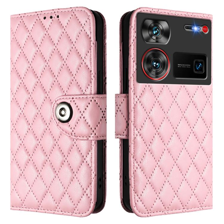 Funda de Cuero con Tapa y Textura Rombal para ZTE Nubia Z60 Ultra con Cordón (Rosa)