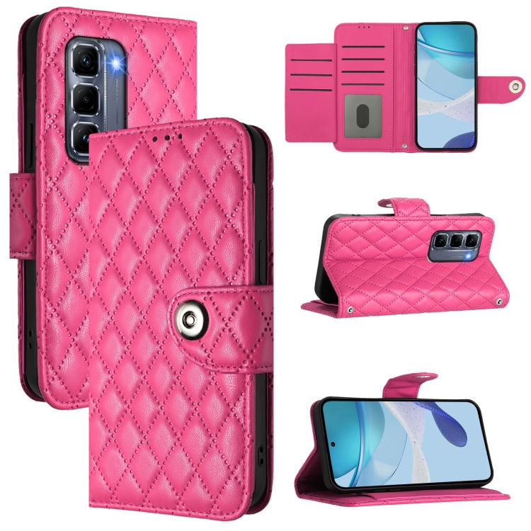 Funda de Cuero con Tapa y Textura Rómbica para Infinix Hot 50 Pro+ 4G con Cordón (Rosa y Rojo)