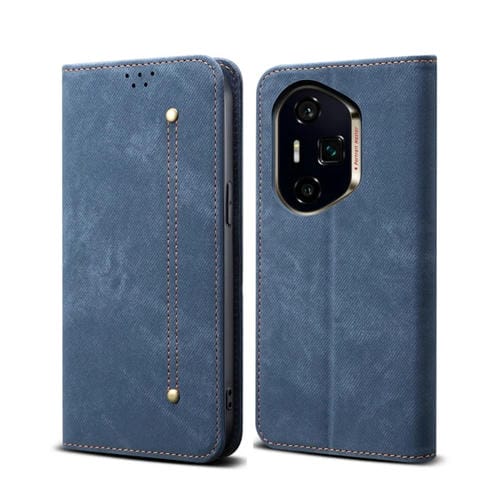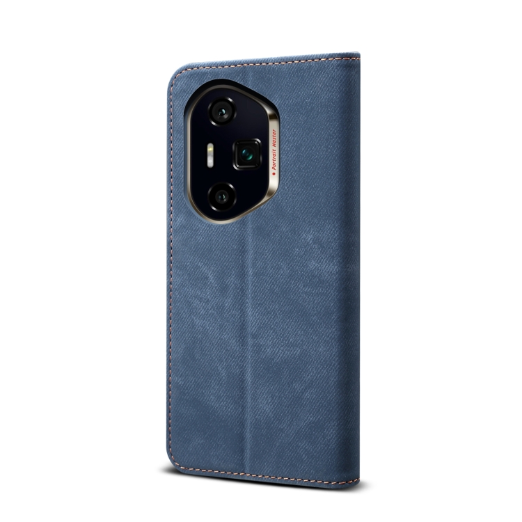 Funda de Cuero con Tapa y Textura Vaquera para Honor 300 Ultra (Azul)