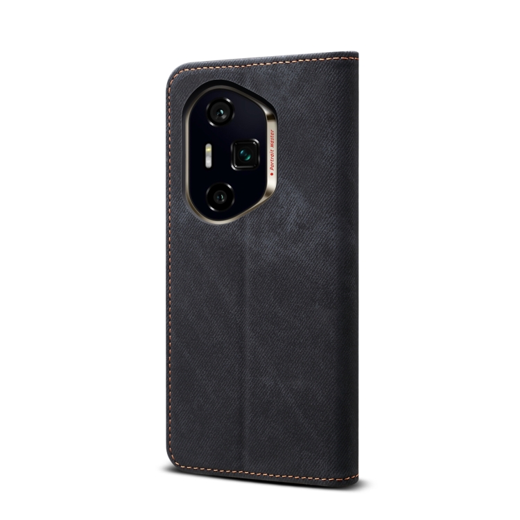 Funda de Cuero con Tapa y Textura Vaquera para Honor 300 Ultra (Negra)