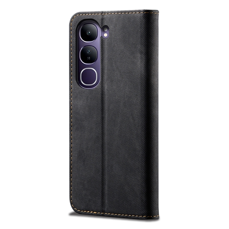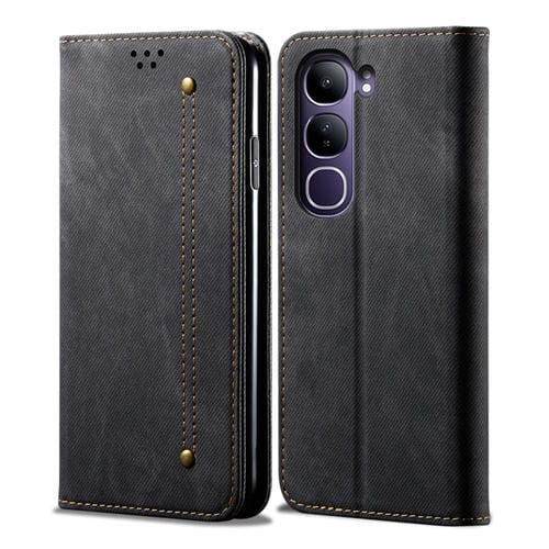 Funda de Cuero con Tapa y Textura Vaquera para Vivo V40 Lite 4G Idn/5G Idn (Negra)