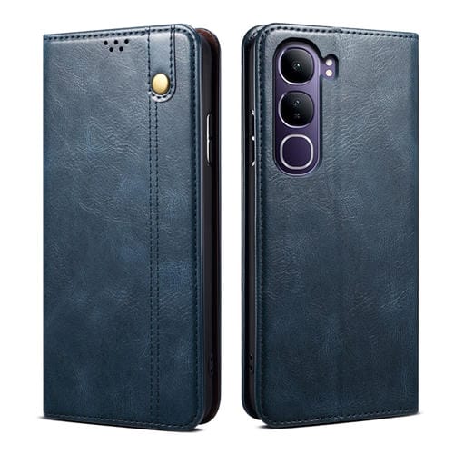 Funda de Cuero con Textura Crazy Horse y Cera de Aceite para Vivo V40 Lite 4G Idn/5G Idn (Azul)