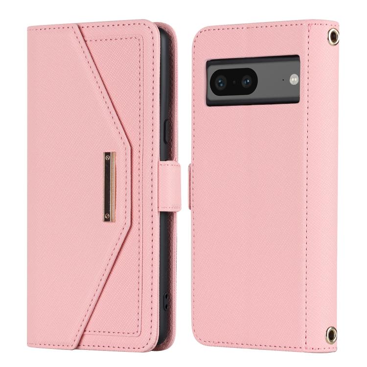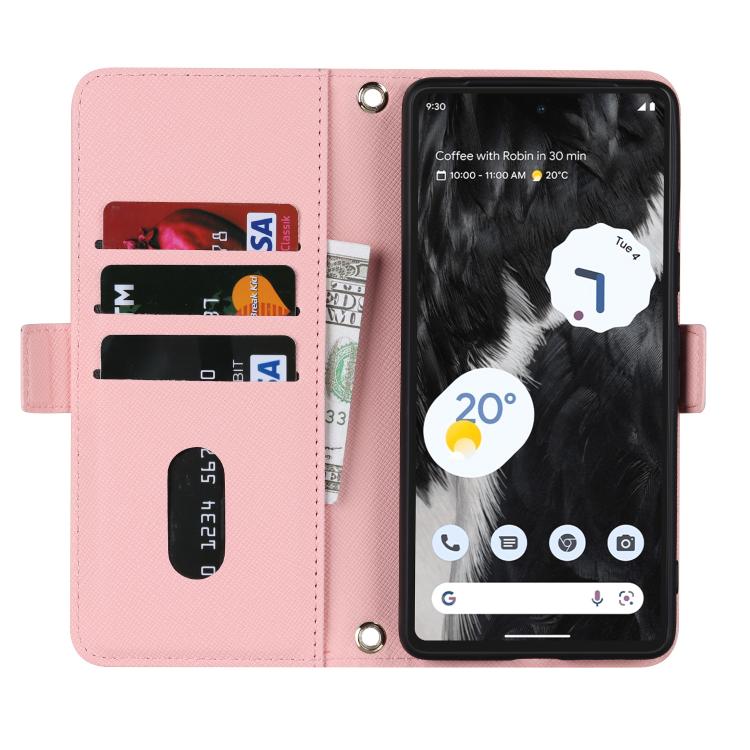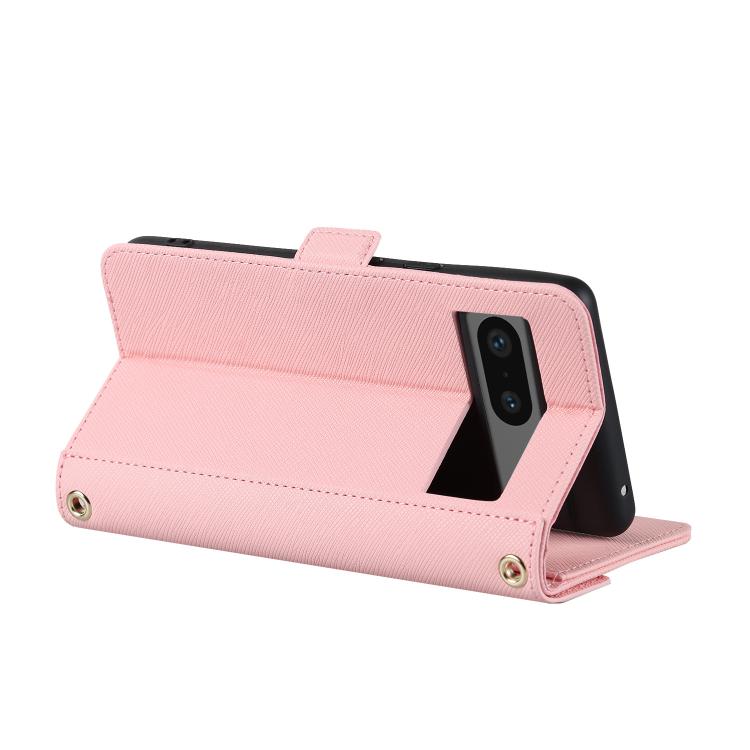 Funda de Cuero con Textura Cruzada y Cordón para Google Pixel 7 (Rosa)