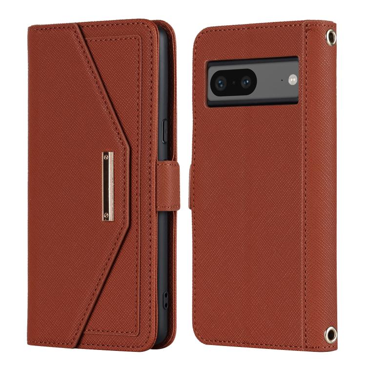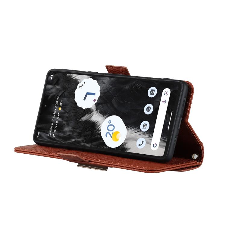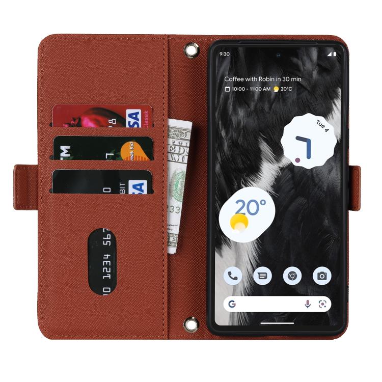 Funda de Cuero con Textura Cruzada y Cordón para Google Pixel 7A (Marrón)