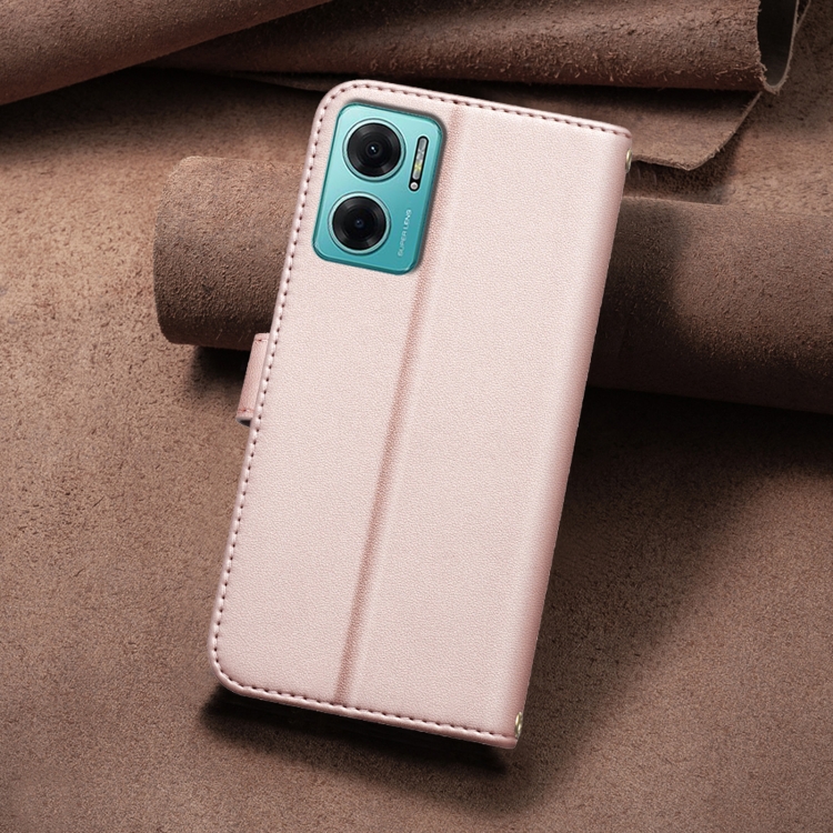 Funda de Cuero con Textura Cuadrada para Redmi 10 5G/Note 11E (Oro Rosa)