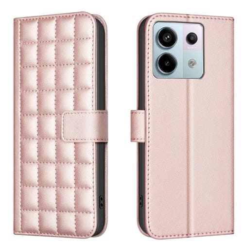 Funda de Cuero con Textura Cuadrada para Redmi Note 13 Pro 5G (Oro Rosa)