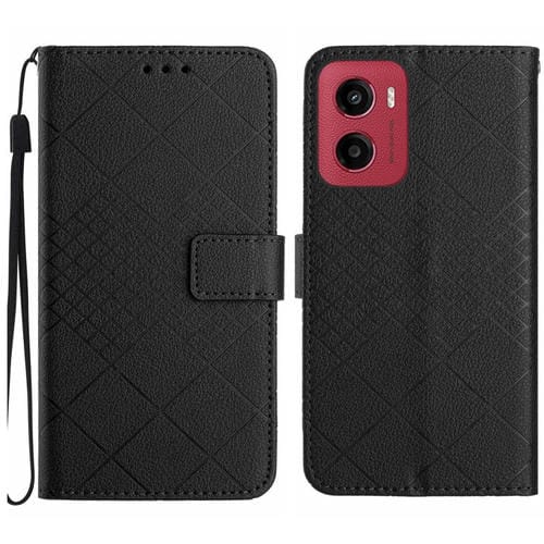 Funda de Cuero para Motorola Moto G05 con Textura de Cuadrícula Rómbica (Negra)