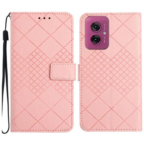 Funda de Cuero con Textura de Cuadrícula Rómbica para Motorola Moto G55 5G (Rosa)