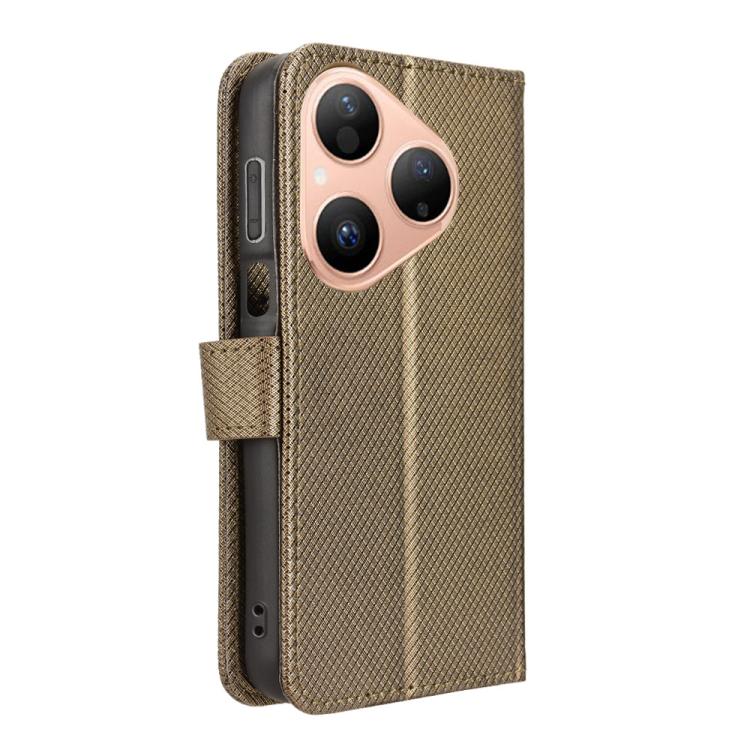 Funda de cuero con textura de diamante para Huawei Pura 80 5G (marrón)